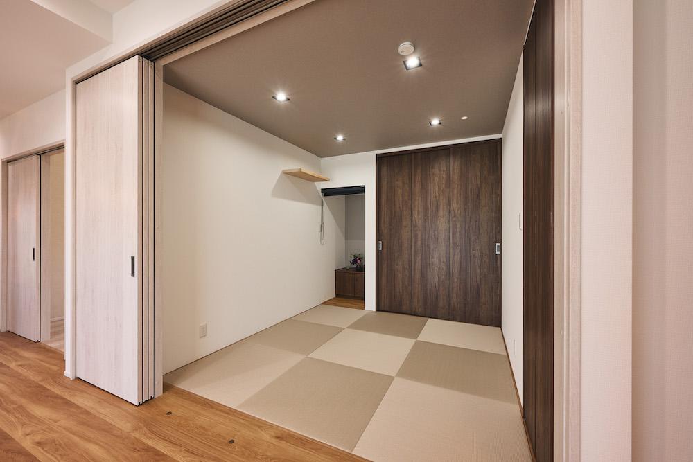 壁と天井の素材を異素材にしたり、色の違いをつけたりすると、天井がアクセントになり、空間の立体感が増します。視覚的な奥行きを感じれば、実際よりも空間を広く見せることもできるでしょう。